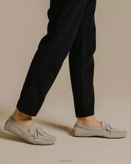 Tomamos nuestro mocasín maranello característico y lo transformamos con un simple lazo y cordones a lo largo del cuello. Confeccionado a mano en Italia con ante italiano ceniciento de color marrón grisáceo y completamente forrado con cuero suave para mayor comodidad, está detallado con costuras expuestas a mano y asentado sobre una suela gommini de goma flexible.